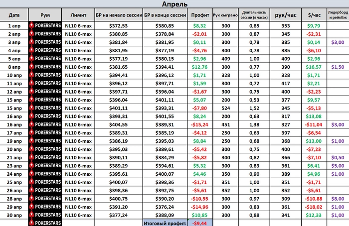 В покере планирую катать побольше, возможно удастся пару МТТ сыграть) Немного соскучился по турикам. Возможно всё удачно сложиться и в мае набью БР для шота на НЛ25 пробного.