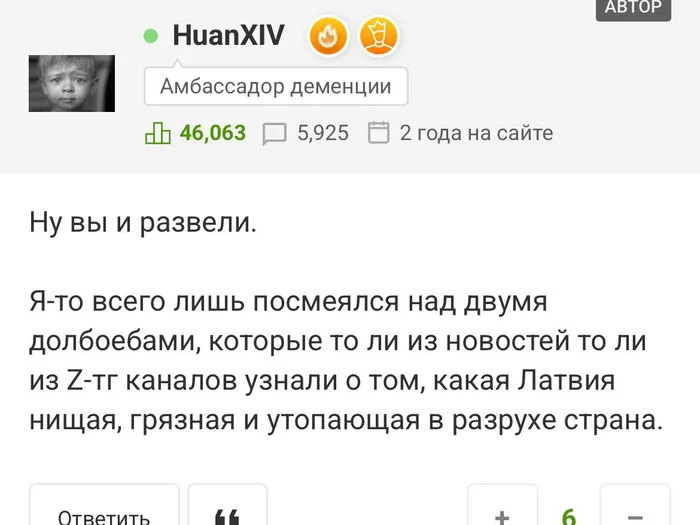 И изначально посыл был совсем в другом. Я вообще не собирался сравнивать РФ и Латвию. Тем более результат этого сравнения очевиден.