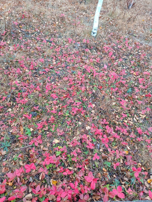 Серую унылость фона осени немного подкрашивают яркие цвета отдельных листочков, а тут - целая поляна в красном колоре!😀🤟