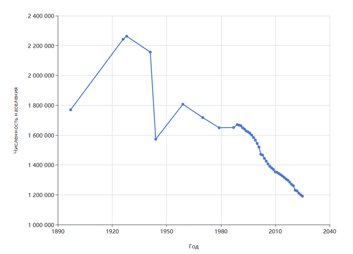 Вот как менялась численность населения одного небольшого российского города, в котором я прожил пару лет: