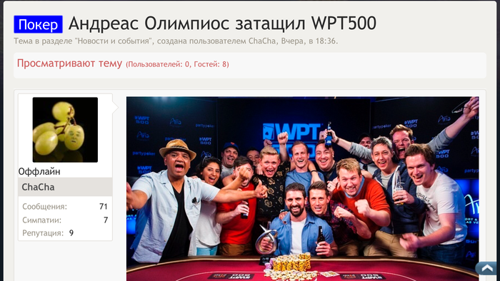 проиграл Грачу очень жесткому. :( просто немного смутил 9 банков на терне по закрывшемуся флешу при том что человек уже 4-5 раз ставил на рейз префлоп алл ины 150бб+. короче едешь дальше - надеюсь будет лучше!