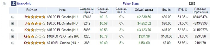 На самом деле если рассуждать здраво, результаты соответствуют моей игре. Я сам понимаю что слабее большинства регов, делаю много ошибок, а все потому что не работаю над игрой. Совсем иная вещь хедзап снг. Я никогда не делился своими результатами в хедзапах, Наверно даже не все знают что я играю не только мтт. А между прочем наиграл я уже больше 30000 турниров за все время. Да, играю я только омаху. Если в турнирах ты как правило проигрываешь и редко выигрываешь но много. То в ха я как правило выигрываю немного все идет плавно, пока не настает даунстрик где за 40 игр заливаешь 30 байинов. Психологически мне это проще, не ждешь какого то мегозаноса и чувствуешь себя спокойней. Такие вот результаты + рейкбек. Хотя очень скоро видимо эти хедзапы умрут.