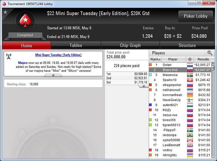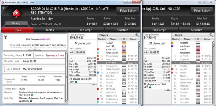 Я конечно разочарован два 7 места... От непрерывной игры немного устал, потерял концентрацию и допустил некоторые ошибки. Еще и достались наверно самые сильные из оставшихся игроков, да и вылетел я в обоих турнирах с . В общем упустил шанс, а удача ко мне не повернулась лицом.