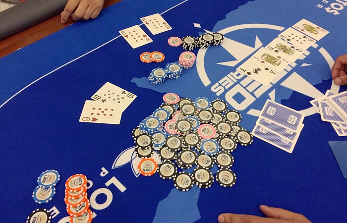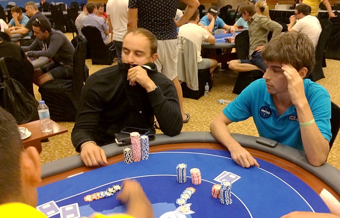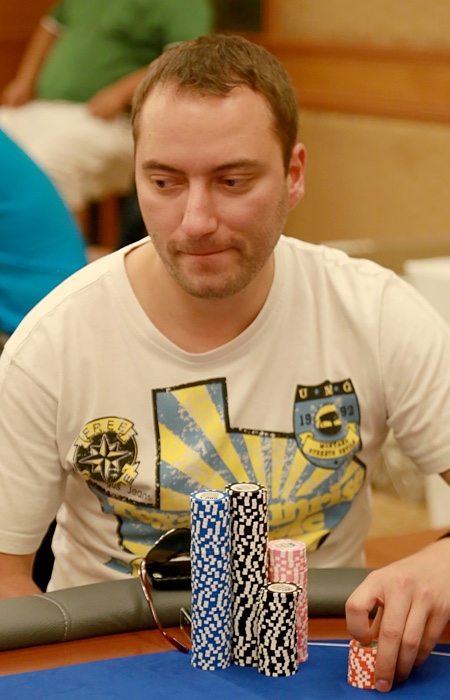 Последним, кто мог бы сделать реэнтри мог стать Абдулали Расулов, начавший день с третьим стеком и довольно уверенно шедший по дистанции. Но его подвела излишняя самоуверенность в раздаче против Бориса Колева из Пловдива. В 3-бет флопе соперники увидели доску , через бет-рэйз добрались до терна , где Абдулали уже загнал себя в олл-ин не имея ни одного шанса на успех: