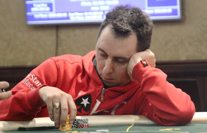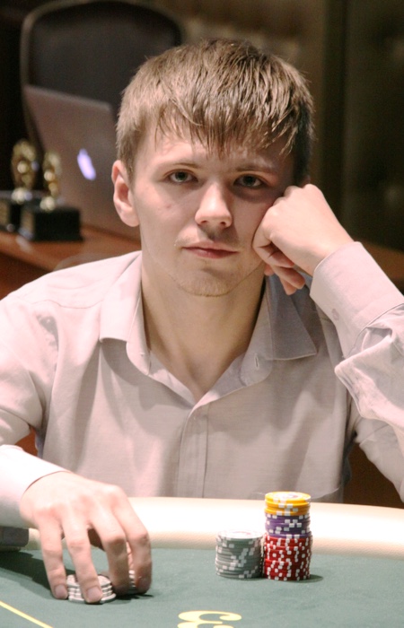 А вот насчет маз Шершнева. Лучше всего у него получается ставить... на самого себя! Нехотя начав сателлит, сейчас он набил уже огромную гору фишек. А ключевой стала раздача, в которой Толя долго размышлял на флопе . Соперник дал рэйз, он переставил, тот двинул олл-ин.
