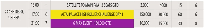 Всем привет! Продолжаем репортажи с SPT. Сегодня возможно состоится турнир хайроллеров... Час-икс наступит в пять вечера. Если нужного числа игроков к этому моменту не соберется (вчера их было 11 заявок), Altai Palace Highroller Challenge придется пождать своего часа. Ну а чтобы обычные игроки не скучали, мы перенесли динамичный 6-max Event с девяти вечера на шесть, когда по установившейся традиции должен завершится сателлит на Main Event. Серия продолжается...