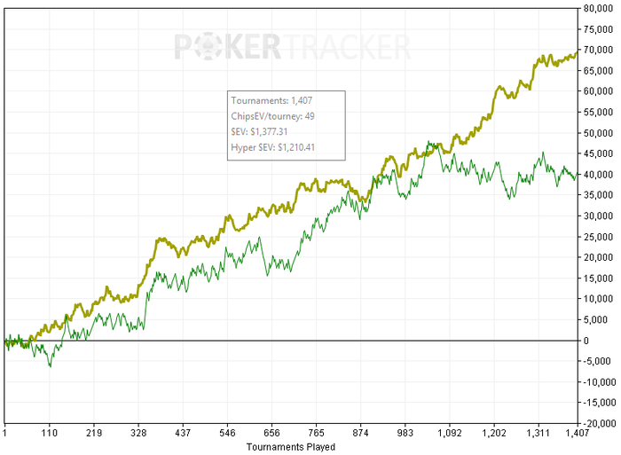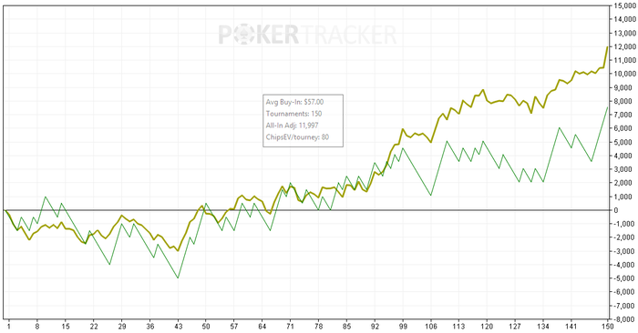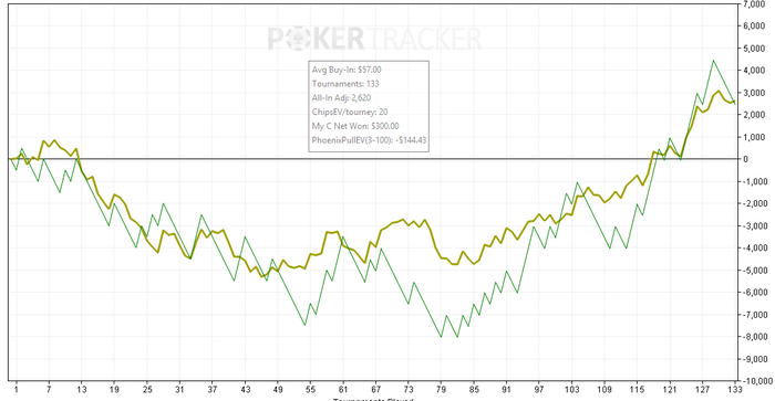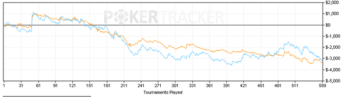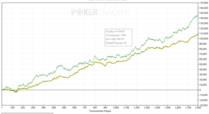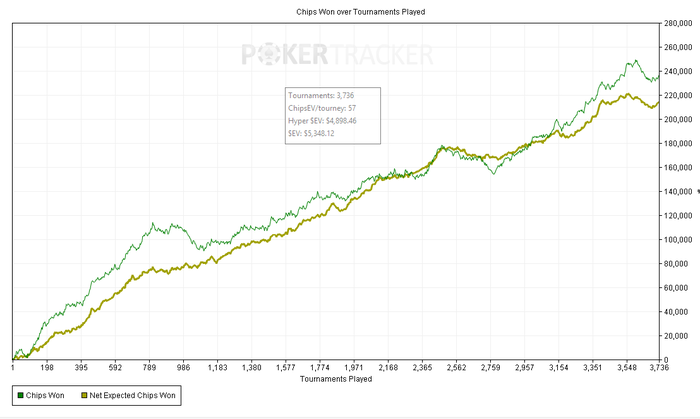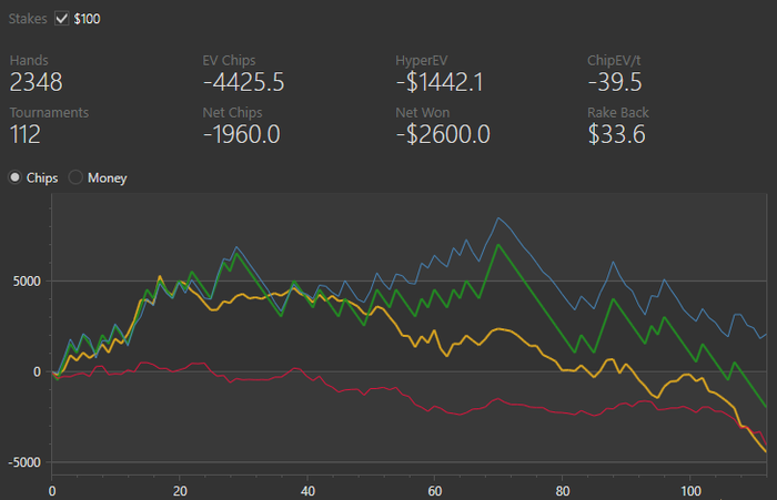 За месяц я отыграл 3500 турниров, показал общий чипЕВ 27, и после того, как за неделю просадил примерно $4000 - решил срочно тикать с этого рума. В целом, этот поход вышел для меня очень плюсовым - скорее всего, это был best month даже с учетом бекинга.