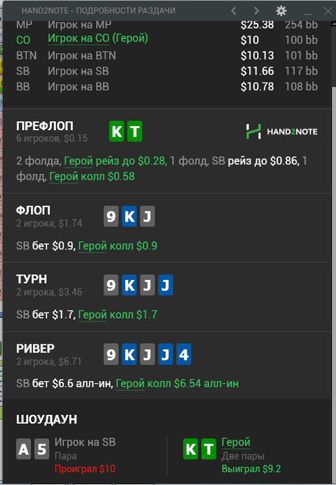 Ривер - я "ой ну какой нах оллин, че у тебя там с сибетом ривера? 52%. Вроде че то чекает, но флеш-дро мы не блочим, стрит блочим, 3бет широкий как река Волга. call заебал показывай"