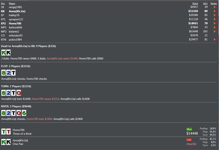 А вот так я сегодня разыгрывала КК, после того как по вылетала в остальных турнирах на премиум руках и подобных с + $EV Diff. Просто оставлю это здесь.