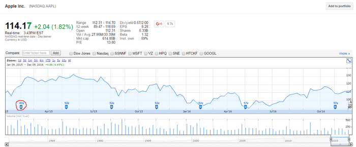 По многим причинам я не занимаюсь фондовым рынком, так что тот прогноз на акции Apple скорее всего так и останется единственным. Да и получился он случайно - меня спросил знакомый на предмет того, будут ли акции Apple еще дорожать. На основе найденной в интернете информации и появился мой прогноз. Точнее, я посоветовал не покупать на максимуме (достаточно стандартный совет), а если очень хочется купить, то подождать падения цены в район 100$ за акцию.