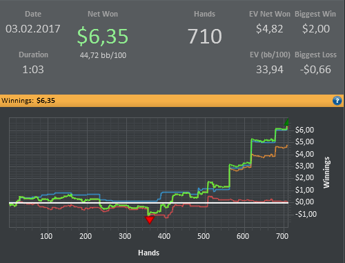 Poker Stars $0.91+$0.09 No Limit Hold'em Tournament - t150/t300 Blinds + t25 - 6 players