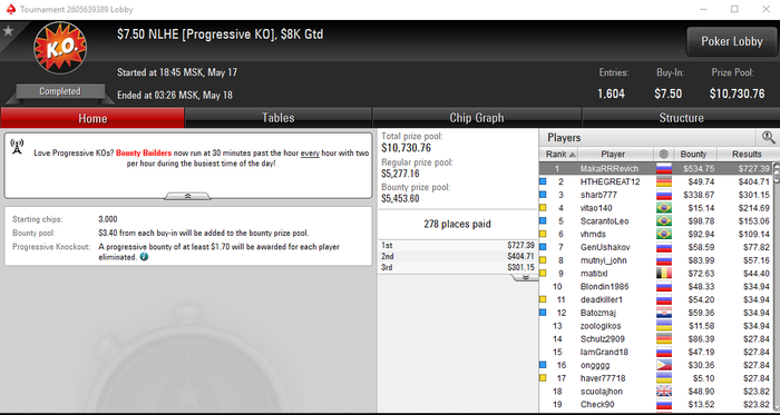 Но, пока все эти проблемы со старзами были, во вторник вечером решил сыграть сессию вечернюю на пати. Из-за того, что на моих лимитах там выбор турниров с нормальными гарантиями ограничен, а никакого responsible game я там не устанавливал, потому что не нашёл, полез сначала на 33$, потом на 55$, а ещё и КО серия, ой как хорошо поиграть хорошие баунти турниры за 109$ и 320$. Ещё и ре-ентри можно? Ой как заебись, возьмите пожалуйста. Короче всё понятно, естественно в такой день недодача по ЕВ -30. И минус 1к$ в кассе.