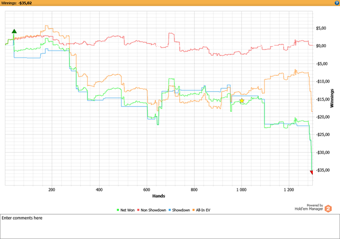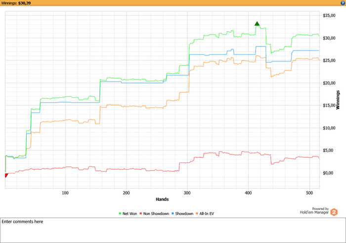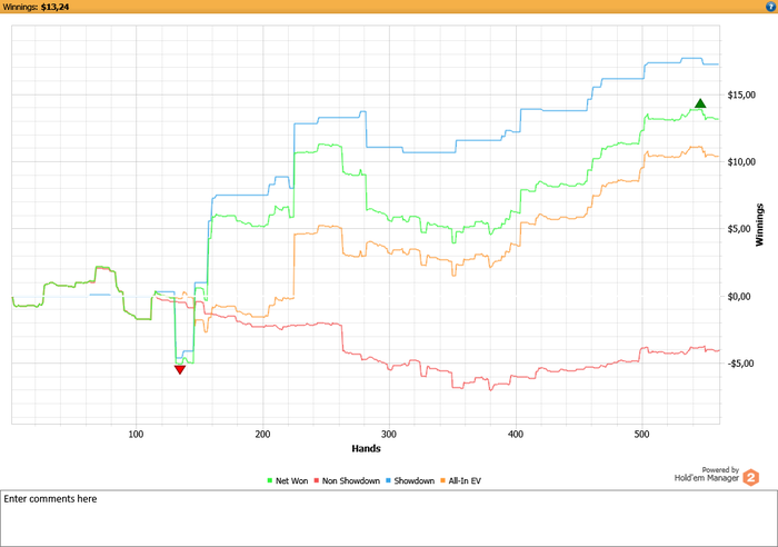 2) 145 рук, 20/16, ВВСФ 48/ВСД 40. Положил его на 88-JJ + иногда там будут блефы и полублефы, хочу их сразу на флопе выбить. Если что, то против пары у меня 55% эквити. Откуда у него против УТГ 33 - я хз)