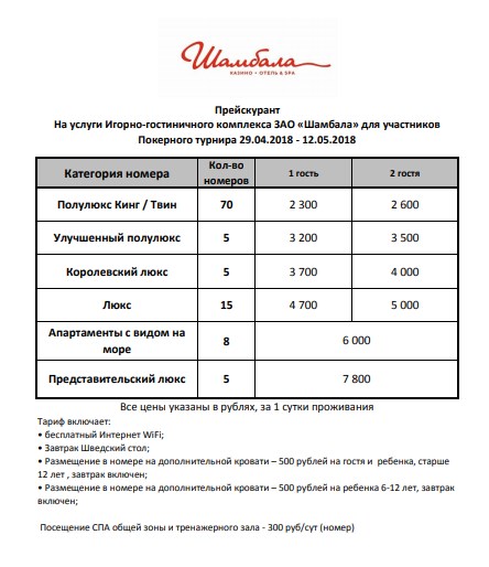 Пятизвездочный отель казино Шамбала рад предложить участникам максимально возможные скидки на эти даты: