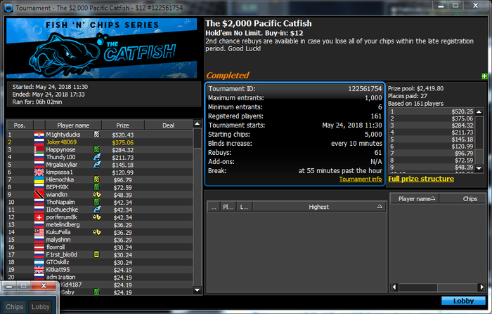 Месяц получился кислым, треть месяца проболел, а последние дни так вообще на работе ввели GPS-слежку и дальнейшее моё будущее в покере сейчас под большим вопросом. Приходится объезжать абсолютно все торговые точки на вверенной мне территории, времени и сил трачу больше, порой приезжаю домой и вообще даже близко к компу подходить не хочется, не то что 8-10 часовые сессии вгружать. Стою на перепутье либо уволиться и заняться профессионально покером либо изредка покатывать по настроению