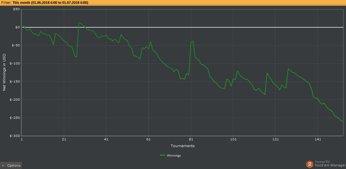 -260$ - Всего турниров: 153, ITM: 23%, ROI: -23%, ABI: 6,6