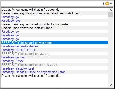 Вообще, забавная ситуация была с регами за столами, садимся мы под випа за стол и рег пишет другому регу, который тоже попал в список нл50, что ему пизда ))) второй стол, ситуация повторяется, но только уже с другим регом, попутно написав, что мне тоже пизда этот рег садится за те же столы, что и люди, которых подозревают) То есть он пишет, что всем кто быстро садится за стол к випу пизда, хотя сам так же быстро садится, еще и писать успевает.