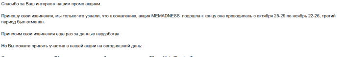 Всё у них через жепу у старзов. Сначала запутали с выводом денег, когда вылезала табличка, что бонус потеряете, хотя не каких бонусов не было и саппорт отвечал, что это относится к маднессу. Спасибо форуму, что объяснили, что можно выводить, а то я без кешаутов месяц мог просидеть. Сейчас вот опять косяки. И вообще я не понимаю, почему бонус надо было делать на скине ФТ, тайно, почти без рекламы, как будто они деньги так отмывают