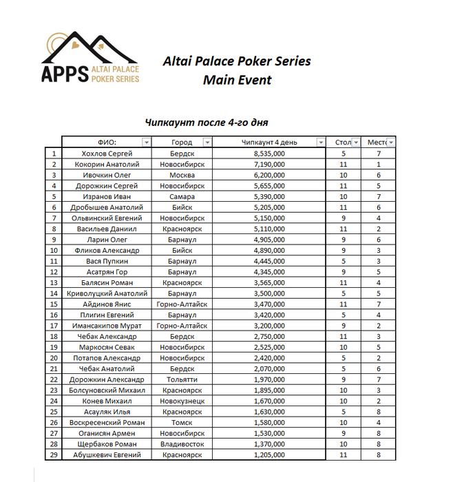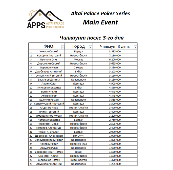 APPS - Altai Palace Poker Series, 25 февраля- 04 марта, Алтай!