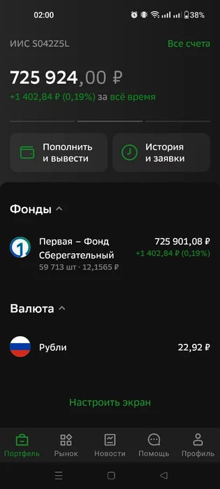Где-то неделю назад принял решение закинуть все средства в фонд «Первая – Сберегательный». Фонд дает доходность чуть ниже ставки ЦБ. Пока не жалею. Рынок поменяется – когда-нибудь в будущем снова начну приглядываться к акциям, но пока нет желания. Изначально этот счет задумывался как менее рисковый, поэтому не хочется заниматься спекуляциями на корректирующемся рынке.