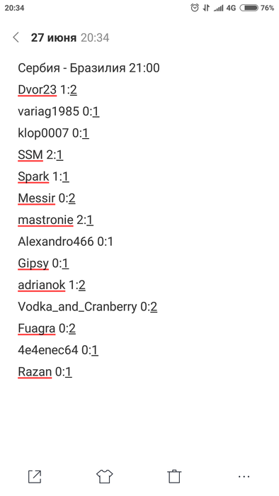 Я опечатался . Хотел поставить 2:1 в пользу Бразилии. Просьба давать время проверить. А так как решите ,пока 0:0... Я хотел ставить 2:1 в пользу Бразилии