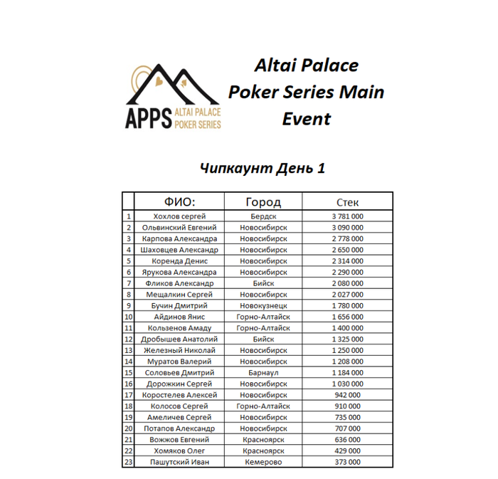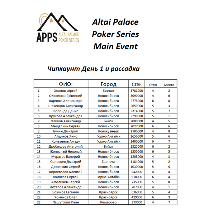 В 11:00 состоится сателлит по 50уе, re-entry, с гарантией 3 места по 440ТД. В 16:00 продолжим MAIN EVENT, re-entry по 440уе, с гарантией 40 000уе. Сегодня сыграем 6 уровней, поздняя регистрация весь день. В 23:00 ШАШЛЫК ПАТИ У КОСТРА! Насладимся чистым горным воздухом, вкусным шашлыком и глинтвейном!