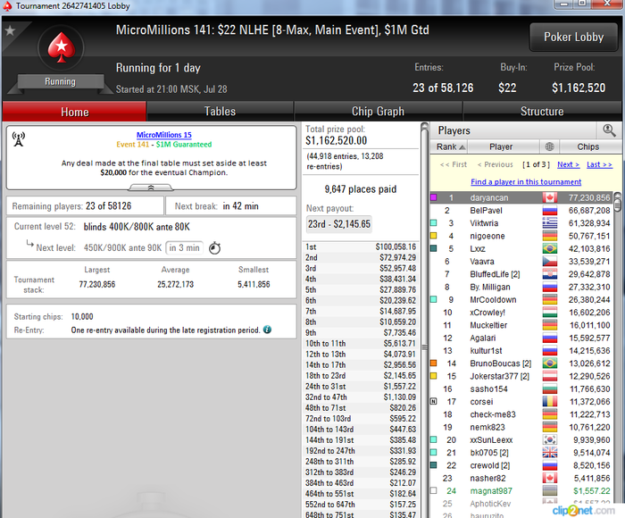 ICM очень велико для 2-го стека в чипака, но тут будем играть скорее всего где-то на полстека, так что надбавка за риск тоже уменьшается в 2 раза. Да и все деньги всё-равно только в