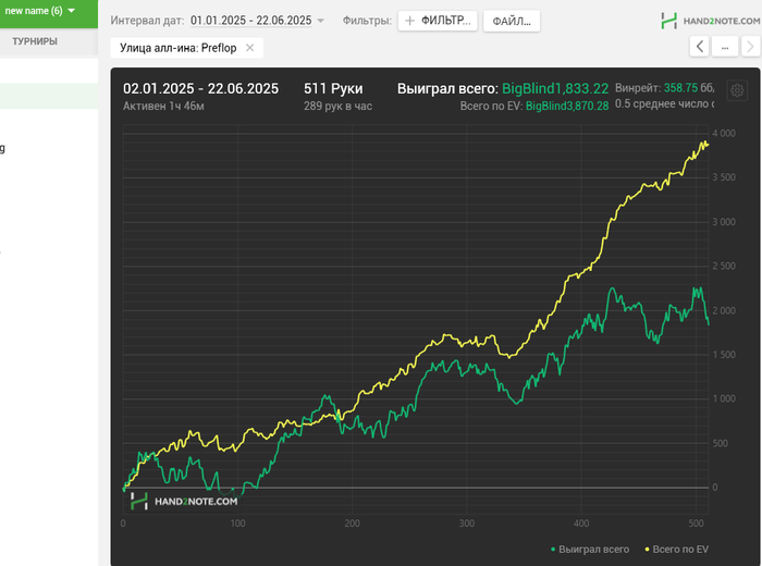 В префлоп оллынах что-то разучился зеленую тащить, 2к бб недодача. В основном фиши калечат, В апйокере ощущение что ни одну монету не затащил.