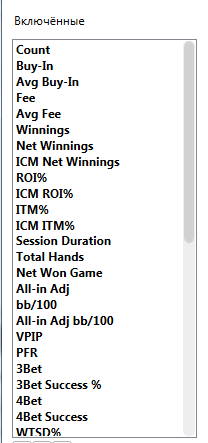 stanisluv @ 7.11.2019 Здесь ошибки как раз нету. Т.к. Net Winnings считается в Preferred Currency, а ROI% фактически в Game Currency. Думаю если сравнить ROI и Net Winnings Game, то всё станет на свои места т.к. Net Winnings Game считается в Game Currency. Вот только я не знаю как поведёт себя этот стат если в одной строке будут и евровые и долларовые турниры. В HM3 есть статы которые используют Mixed Currencies, вот только они используют этот микс только для общих значений стата, в с строках репорта используются Game Currency.