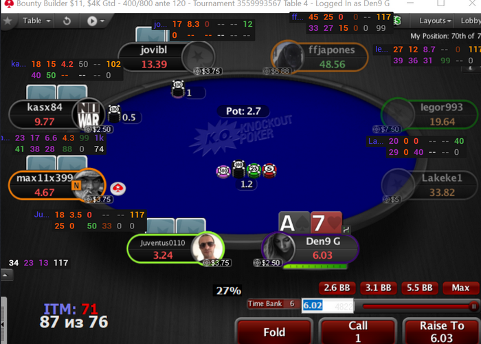 Den9_GG, я бы смотрел в разрезе РОИ на дистанции, тогда пофиг до шашек, ИТМ с большой вероятностью случится при фолде, но пихнуть всегда с объяснением "я на первое играю" можно, но если думать дистанцией, на которой хочется иметь РОИ, то фолд.