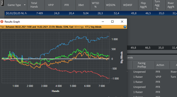 В эмоциональном плане худшая неделя за последние месяцев 10. Каждый день просыпалась с плохим настроением и думала а нахер это все нужно вообще. Каждый день покер только ебаный покер и все. И не то чтобы я по5 часов катала и в фз сидела Просто в течение дня много обсуждаю/смотрю/читаю про покер. Он занял все мое время. Я не играю( хотс вспоминала, взгрустнула даже немного о временах когда мы вместе были и как нам было хорошо и весело) не смотрю сериалы, вообще никак не отдыхаю кажется. Вроде все просто, да? Возьми выходной . Не могу. Время давит пиздец. Цели годовые давят. Ничего не получается, сколько бы не занималась покером этого всегда мало, а я уже на пределе возможностей кажется. Катать 3,5 часа зум эмоционально сложно. Приходится думать над каждой раздачей, а еще за первые 20 минут столько говна увидеть можно что больше никогда не хочется садиться катать. Как люди играют это по 4+ часов да еще и 3,4 стола я хз. Может им по 20-25 лет Других объяснений нет))На ФЗ после 3 часов игры нет сил вообще. А еще воды надо смотреть. Короче дичь. Вот вроде ввсф почти 50 но красная все равно в аду Зато винрейт уже не 0, а 1,5 И если бы баттон не убился еще больше мог бы быть))