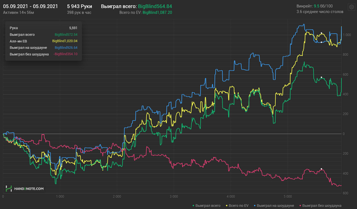 Больше часов за день я, наверное, еще никогда не играл. Ну и рук на 4-х старзовских столах тоже. Но такие классные столы сегодня, жалко было выходить.