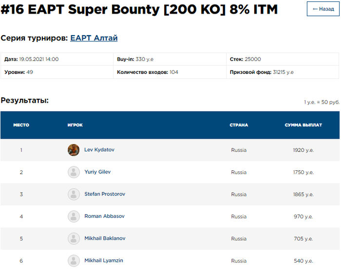 Примерно в одно время с Капом завершился и Супербаунти, чемпионом которого стал Лев Кыдатов.