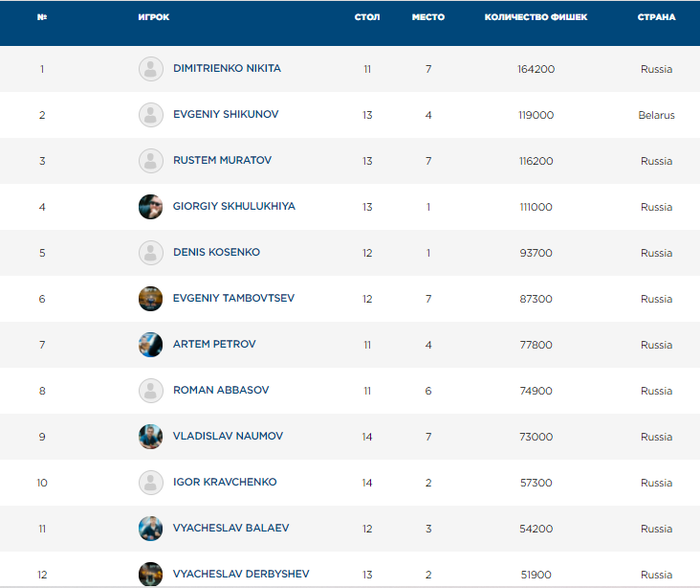 Здорово складываются первые часы у Владимира Донченко. Он увеличил стартовый стек в три раза, и сейчас является чиплидером. Не скажешь этого про Сергея Хохлова, сделавшего уже третий вход в турнир.