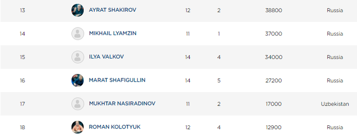 У Юхарева уже второй стек, Тавитов опустился до 1,9М.