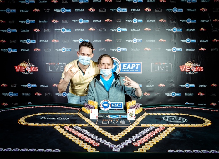 Виталий Тавитов (SB) поставил на двух улицах 200,000 и 300,000 в доску . Ривер прочекали. Тавитов открыл две пары , но Юхарев (ВВ) был старше с двумя другими совпадениями .