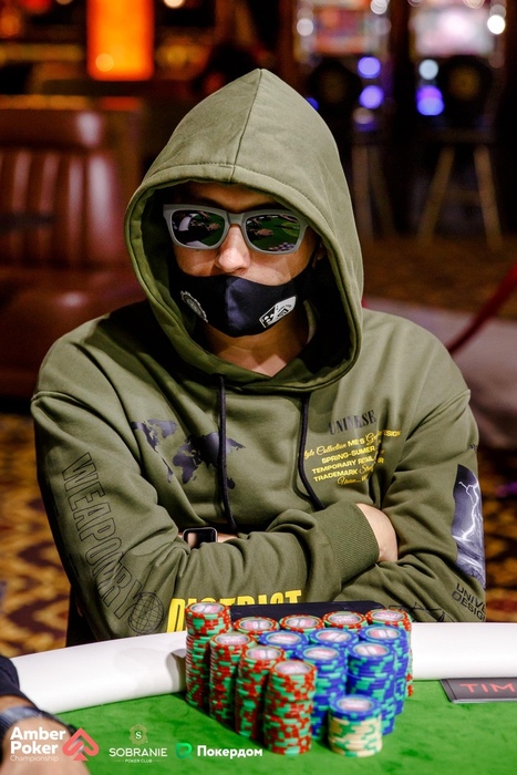 Артем Софронов зарейзил 60,000 с малого блайнда, Дмитрий Сухоруков защитился. На флопе Артем поставил 42,000, тёрн оба прочекали, а по риверу Артем сыграл овербетом 260,000. Дмитрий долго думал и склонился в сторону паса.