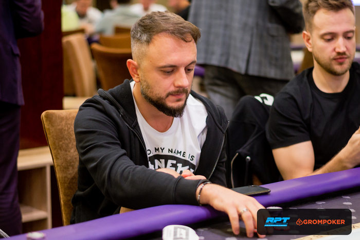 Андрей Голубев не смог с обыграть Павла Мешкова, а за соседним столом также карман королей, но уже у Вадима Липовки, нокаутировал Игоря Зубкова в тройном оллине. В стеке у Игоря оставалось всего 20ББ, его не нашли утроения против и на доске .