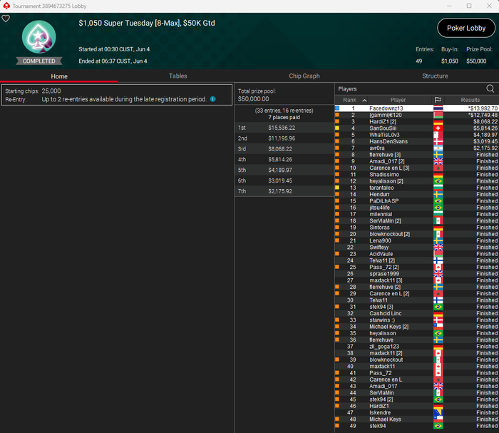 турниры мне всегда были интересны, но становиться профессиональным мттшником я пока не собираюсь. Когда начинал играть в покер, я пробовал турниры, но не пошло. Ничего удивительного в этом не было, ибо обучение было практически на нулевом уровне. Потом я пробовал снгшки с переменным успехом, в какой-то момент они наскучили, и по итогу пришел в кэш. Кэш мне всегда казался более структурной и логичной игрой, учиться играть было проще. Сейчас я катал скупы просто фо фан, потому что это мечта моего детства - сыграть относительно дорогую серию с сильными полями, ибо на Старзах в нл хай ивентах практически нет любителей. Опыт был интересным, но другие аспекты моей жизни за этот месяц слишком сильно страдали, поэтому я рад, что серия закончилась. Миллионсы я буду продолжать пытаться играть через саты, ибо меня сильно манит возможность выиграть свое около годовое ожидание за 1 день. Ну и как челлендж для меня это очень интересно.
