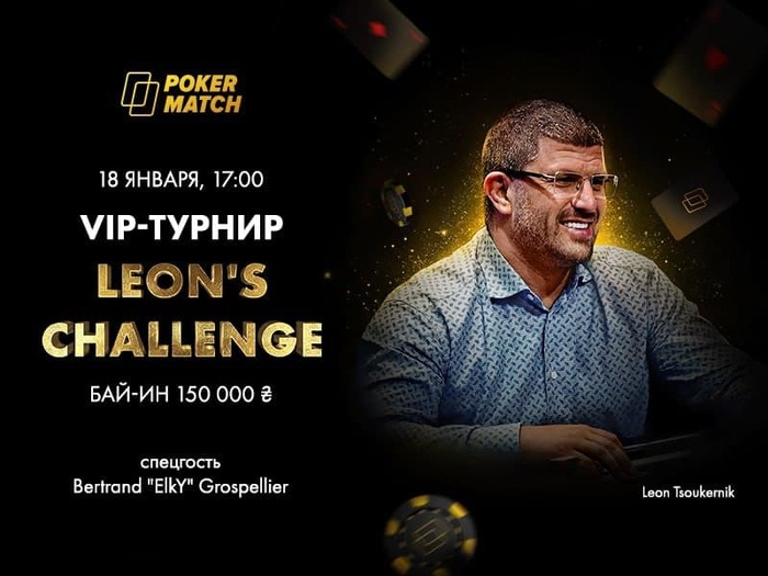 🙌 Сегодня в 20:00 на PokerMatch ты можешь попасть на наш супертурнир Leon's Challenge за 30,000 гривен.