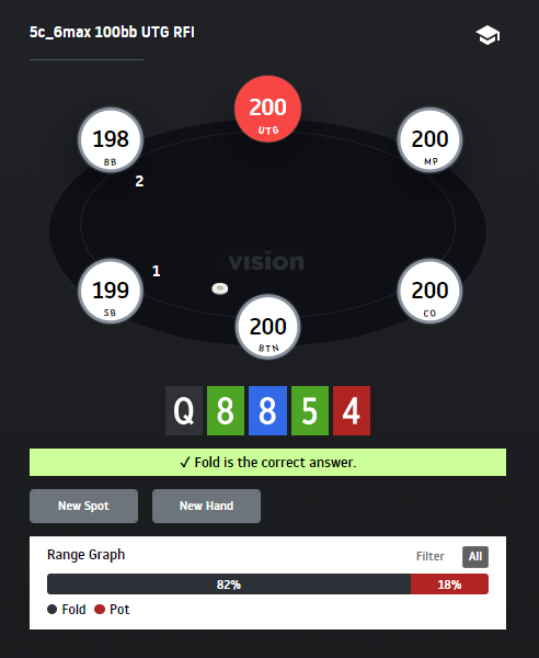 Как я уже говорил, в эти 3% и входят эта рука ИМЕННО с такой расстановкой мастей. Вот так это работает. Ну и конечно же, учитывая тот факт, что 90% оппонентов играют за гранью ренджей солвера, возможно 3-бет тут не будет таким плюсовым.