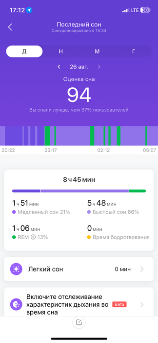 Проснулся без будильника в 05:30. Если нужно время на восстановление, ложусь раньше. 9 часов после интенсивной тренировки -- то, что нужно.