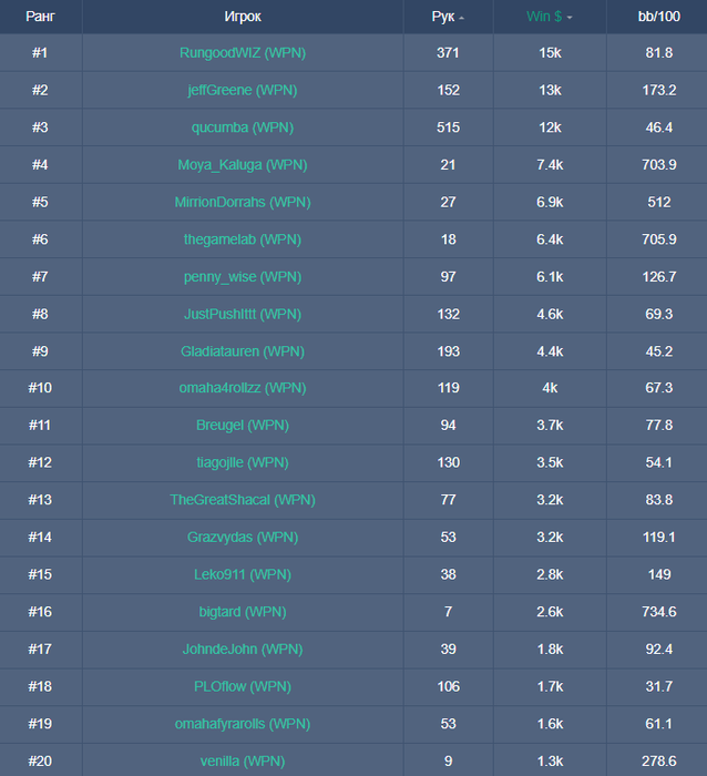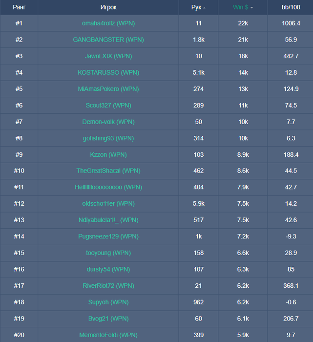 По Омахе да! вижу Ионас все надавал! Зерг, а где же великий кучеряшка Джон???? почему не в ТОПе???