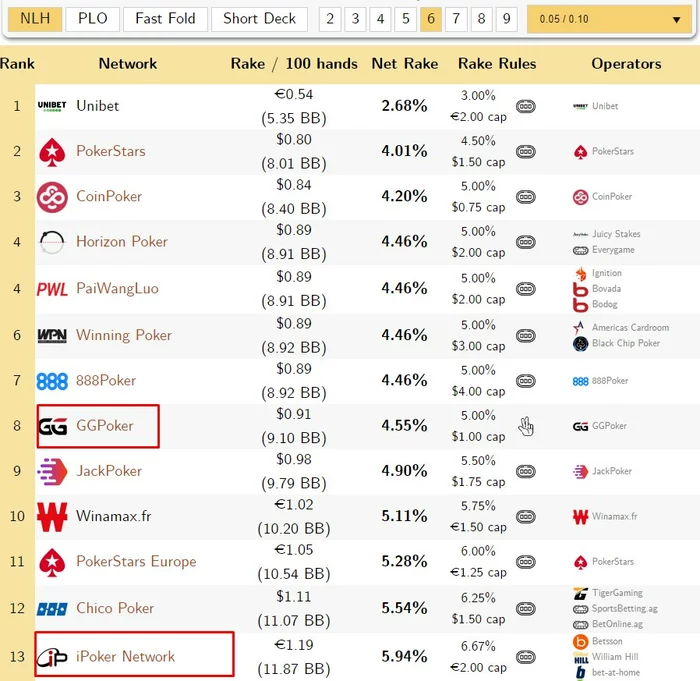 Да вы просто гляньте на кап рейка. В каждом выставлении на сто блайндов, если победили у вас остается 190бб на ГГ и, внимание, 180бб на ipoker. Тут не нужно быть гением, чтобы понять где выше рейк.