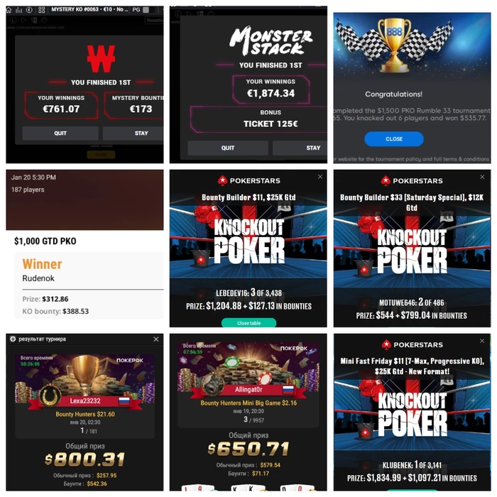 💥 oboe12311(Никита) прошелся по Winamax, выиграл Monster Stack и MYSTERY KO, получив суммарно €2808 и турнирный билет на €125 в виде бонуса. Шикарный результат!
