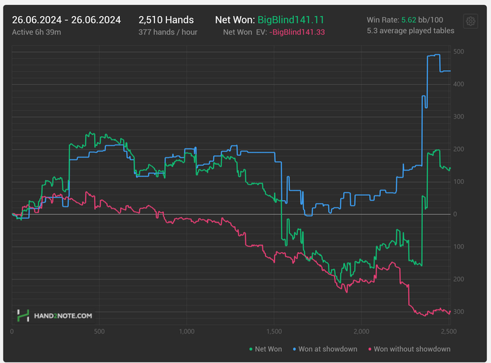 141 рабочий час. Строго нл50-100. примерно +3к. график туфту показывает какую-то, разбираться уже не хочу с этим х2н. Замучала куча касс, резервов у разных аффов, хрен разберешься. Стал вести сам таблицы где сколько выйграл, хотябы в основных клубах.
