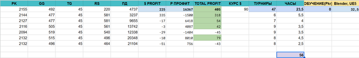 Март 2025:35 турниров, 19 часов,обучение(GameDev) 31.5 часов,профит +$972