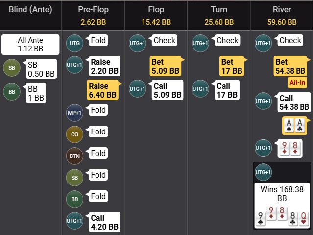 4. Ты проигрываешь UTG-1 и вылетаешь из турнира.