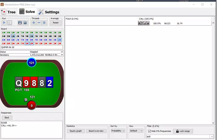 proces, тузы не очень хотят тут флоп потить. Для тривея, тузы - слабоватая рука для потбета. У опов очень узкая прослойка рук в ренжах с которых мы пОтом тут добрать можем, и на пуш, мы вроде и выкинуть не можем и хорошо не поедем никогда.