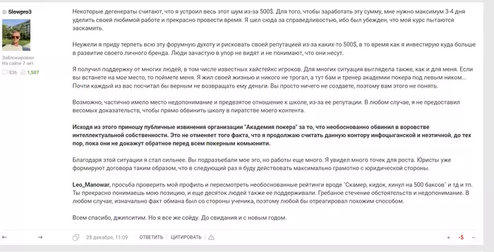 Обращение к форумчанам. Тренеру из академии записал отдельный войс с извинениями.